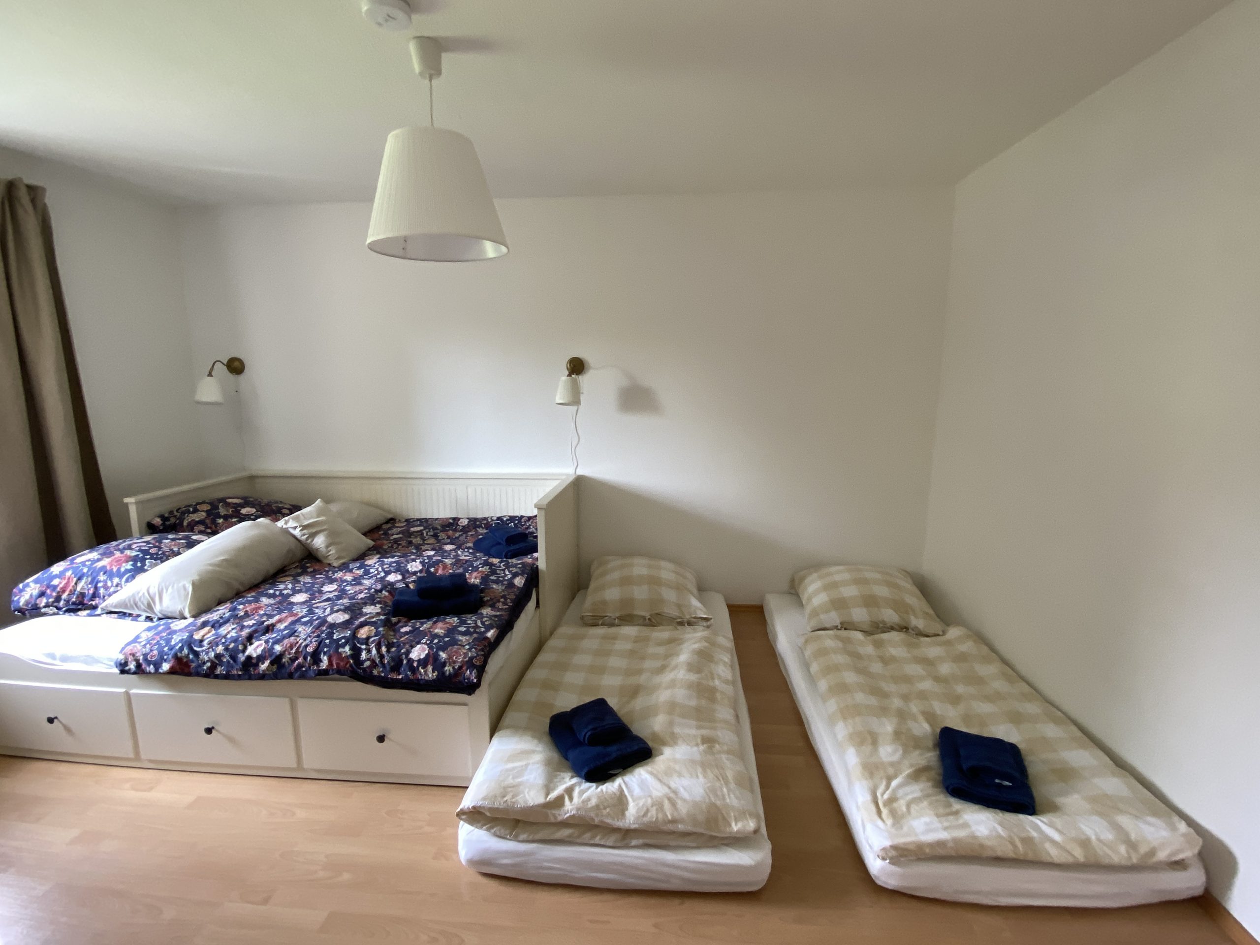 The retreat apartment is accessed by a private entrance making it an ideal place for a personal or family retreat. The apartment has two-bedrooms; a living room; kitchen/dinette and one full-bath. The windows provide views of the garden, and are framed by the green vines growing on the outside of the house. In this way the refreshing beauty of nature is translated indoors. This creates an environment of peaceful tranquility for hearts and minds to find rest.